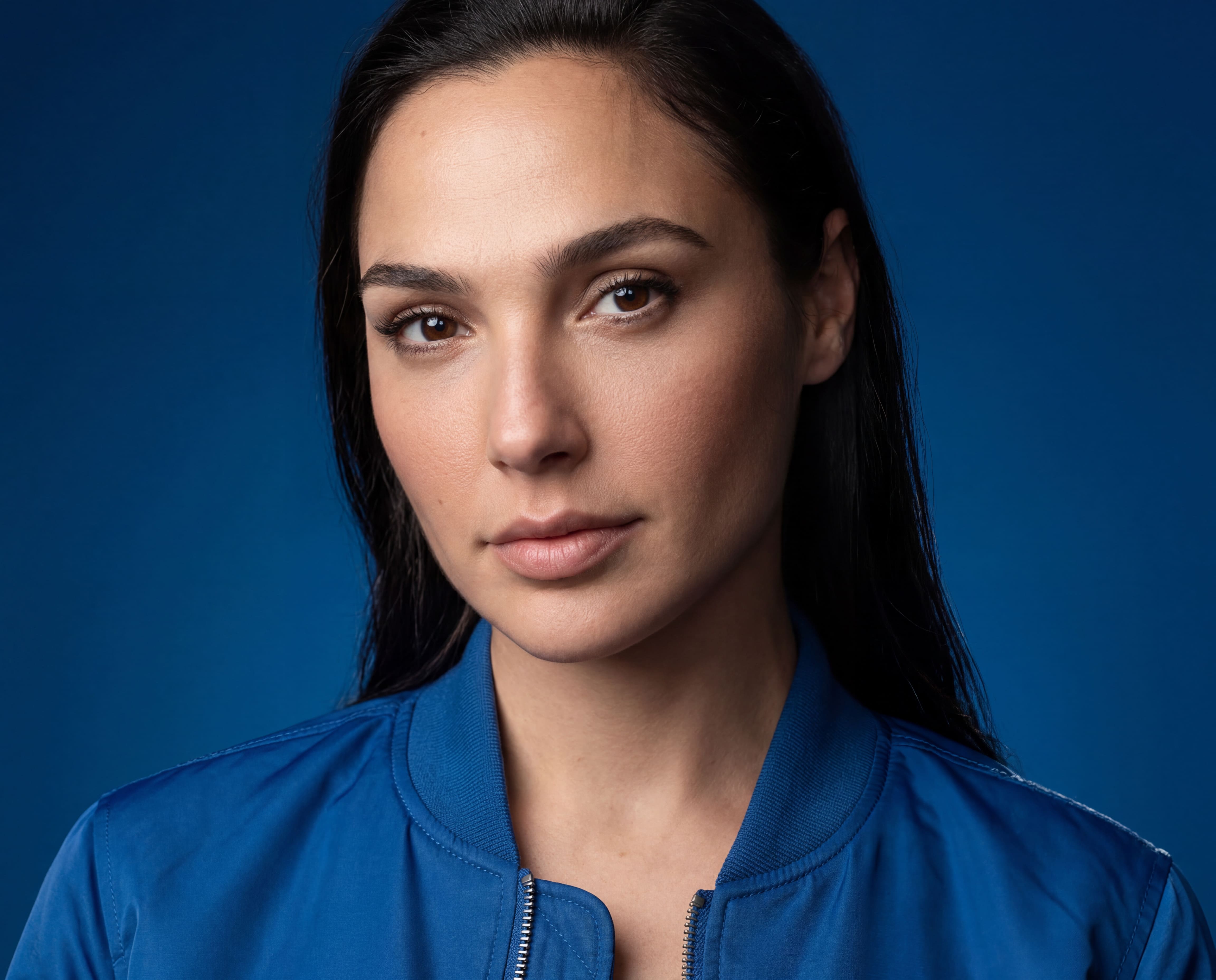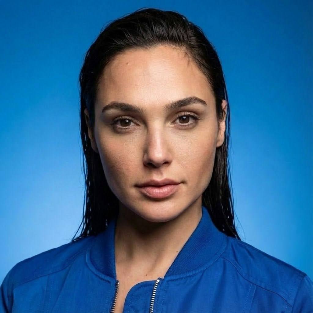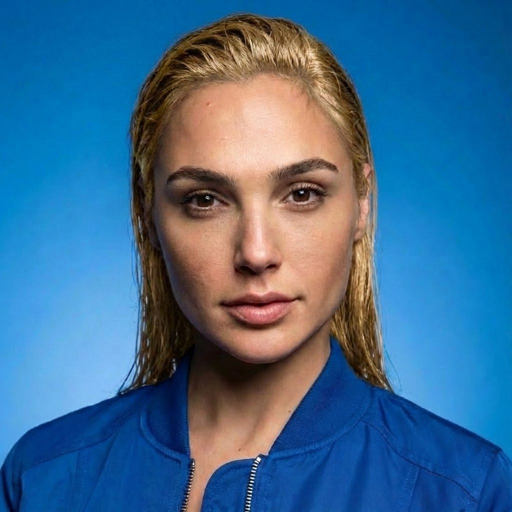 "сделай ультра реалистичное фото по моему селфи, перенеси меня в фотореалистичный редакционный студийный портрет, максимально сохраняя мою природную внешность 1-в-1: те же черты лица и пропорции, природную асимметрию, форму и цвет глаз, бровей и губ, линию роста волос, цвет и структуру волос; без морфинга/усреднения/face swap; не менять возраст; без бьюти-ретуши. Лицо 1-в-1 Сохранить идентичность без «улучшайзинга»: не менять форму головы, нос, губы, скулы, челюсть, подбородок, расстояния между чертами; сохранить естественную асимметрию. Кожа живая: поры, текстура, без пластика, без чрезмерного контраста на лице. Фигура Плечи стандартной ширины (не узкие), телосложение худое/аскетичное, длинные конечности. Поза и композиция Средний план, лицо и плечи в фокусе. Низкий ракурс, но без искажений перспективы: камера чуть ниже уровня глаз, не снизу подбородка. Голова слегка повернута, подбородок чуть опущен, чтобы линия челюсти выглядела мягче и естественнее. Взгляд чуть выше камеры, выражение серьёзное, но более мягкое и привлекательное, губы расслаблены. Фон и окружение Чистый насыщенный голубо-синий фон с мягким градиентом, без деталей и предметов. Свет и тени Ключевой свет большой мягкий софтбокс спереди-слева под углом 45°, мягко моделирует лицо, аккуратные тени под скулой и под носом без «провалов». Заполняющий свет слабее справа, чтобы сохранить драму, но не делать лицо жёстким. Лёгкий контровой сзади по волосам и плечам отделяет от фона, тонкий хайлайт по прядям. Контраст высокий, но кожа остаётся естественной, без грязи и без пересвета, neutral color harmony, premium editorial feel. Одежда Ярко-синий бомбер, ткань реалистичная, молния и швы детальные, посадка аккуратная. Камера и объектив Портретная оптика 85mm, реалистичная перспектива, фокус на глазах, высокая детализация, фон мягко размытый. Негативный промпт изменение лица, изменение пропорций, изменение глаз/носа/губ/скул/челюсти, выравнивание или исправление природной асимметрии, омоложение/старение, морфинг/усреднение/face swap, чрезмерная ретушь и пластиковая кожа, агрессивный контуринг, слишком жёсткие тени на лице, пересветы, CGI/мультяшность, артефакты, шум, смаз, искажение перспективы «снизу вверх», лишние предметы, текст, логотипы, водяные знаки."