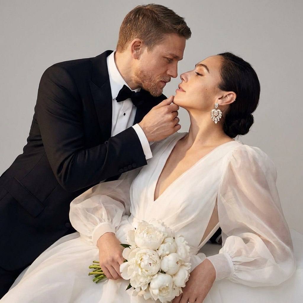 " Создай реалистичное фото по моему исходному фото. Используй ТОЛЬКО ЛЮДЕЙ с исходной фотографии. Не добавляй новых людей. Сохрани внешность обоих, природную асимметрию лица, без морфинга/усреднения/face swap, возраст и волосы не менять. Создай романтическую свадебную фотографию в студийном стиле. В кадре — пара в близкой, интимной позе. Образ женщины: - одета в элегантное белое свадебное платье с объёмными рукавами из лёгкой полупрозрачной ткани (органза или фатин); - платье имеет глубокий V-образный вырез, подчёркивающий линию шеи и плеч; - держит в руках букет из белых цветов (например, пионы или ранункулюсы); - носит крупные декоративные серьги, добавляющие утончённости образу; - поза выразительная: слегка запрокинула голову назад, лицо расслаблено; - одна рука мягко держит букет, другая опущена вдоль тела; - положение головы и шеи подчёркивает грацию и лёгкость образа. Образ мужчины: - одет в классический чёрный смокинг, белую рубашку и чёрный галстук-бабочку; - поза защищающая и нежная: слегка наклонился к женщине, одной рукой аккуратно поддерживает её подбородок; - корпус наклонён вперёд, поза подчёркивает близость и заботу; - выражение лица сосредоточенное, взгляд направлен на женщину. Композиция: - пара расположена в центре кадра, занимает большую часть изображения; - ракурс слегка сверху, что создаёт эффект интимности и камерности; - пространство вокруг героев минималистично, фон не отвлекает от главных объектов; - композиция диагональная, с акцентом на взаимодействии пары; - линии тел плавные, создают ощущение единства и гармонии. Фон: - однотонный, светло-серый или белый, без деталей и узоров; - служит для выделения пары и акцента на их эмоциях; - создаёт нейтральный фон, подчёркивающий белизну платья и контраст с чёрным смокингом. Освещение: - мягкое, рассеянное, с тёплыми оттенками; - подчёркивает текстуру ткани платья и костюма, создаёт нежные блики на рукавах и коже; - свет падает сверху и немного сбоку, формируя мягкие тени и добавляя глубины кадру; - акцентирует внимание на руках и лицах героев, создавая атмосферу уюта и тепла. Общее настроение: - интимность, нежность, глубокая эмоциональная связь; - атмосфера романтики и спокойствия, характерная для свадебных фотосессий; - ощущение момента, застывшего во времени, наполненного чувствами и доверием. Стиль исполнения: - реалистичный, с высокой детализацией (текстура ткани, блеск украшений, складки платья); - цветовая гамма контрастная: светлый фон, белое платье и тёмный смокинг; - акцент на эмоциях и взаимодействии пары, без лишних деталей и отвлекающих элементов. НЕГАТИВНЫЙ ПРОМПТ: менять прическу мужчине, менять лица/асимметрию, менять возраст, морфинг, усреднение, face swap, пластик и сильная ретушь, лишние пальцы/руки, склеивание пальцев, деформация суставов, артефакты, мультяшность, HDR, кислотные цвета, текст/логотипы, лишние люди, потеря фокуса на лицах."
