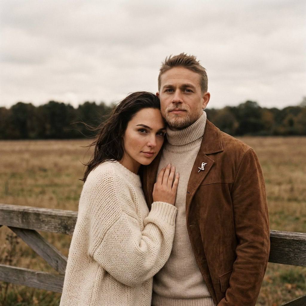 "Создай реалистичное фото по моему исходному фото. Используй ТОЛЬКО ЛЮДЕЙ с исходной фотографии. Не добавляй новых людей. Сохрани внешность обоих, природную асимметрию лица, без морфинга/усреднения/face swap, возраст и волосы не менять. Два человека с моего фото 1:1. Волосы и прическа у мужчины не изменна. Нет лишних морщин Фотореалистичный кинематографичный lifestyle‑кадр пары на природе, вертикальный портрет. Сцена на фоне открытого поля и линии тёмных деревьев вдали, пасмурное небо, мягкий рассеянный дневной свет. Пара стоит рядом у деревянного забора/ограждения; женщина слегка прижимается к мужчине и кладёт руку ему на грудь, поза спокойная и уютная, настроение романтичное, осеннее. Одежда и фактуры: у мужчины коричневый замшевый/вельветовый пиджак с небольшим металлическим пином на лацкане и светлый высокий вязаный свитер‑гольф; у женщины объёмный светлый вязаный свитер с длинными рукавами. Ветер слегка шевелит волосы, одежда выглядит тёплой и уютной. Цвет и обработка: тёплый винтажный film‑look, приглушённые коричнево‑бежевые тона, лёгкая матовость, умеренное плёночное зерно, низкая насыщенность, мягкий контраст. Глубина резкости небольшая: пара в фокусе, фон мягко размытый. Камера: средний план (по пояс), 50–85mm, f/1.8–2.8, естественные тени, без вспышки, лёгкая виньетка. Негативный промпт аниме, морщины, иллюстрация, CGI, 3D, мультяшный стиль, пластик, чрезмерная ретушь, beauty-filter, сильный блюр, смаз, пересвет от вспышки, красные глаза, артефакты, бэндинг, постеризация, текст, водяные знаки, логотипы, обрезанные лица, лишние пальцы/конечности, искажённая анатомия, взгляд девушки мимо камеры, закрытые глаза, неестественные выражения лица."