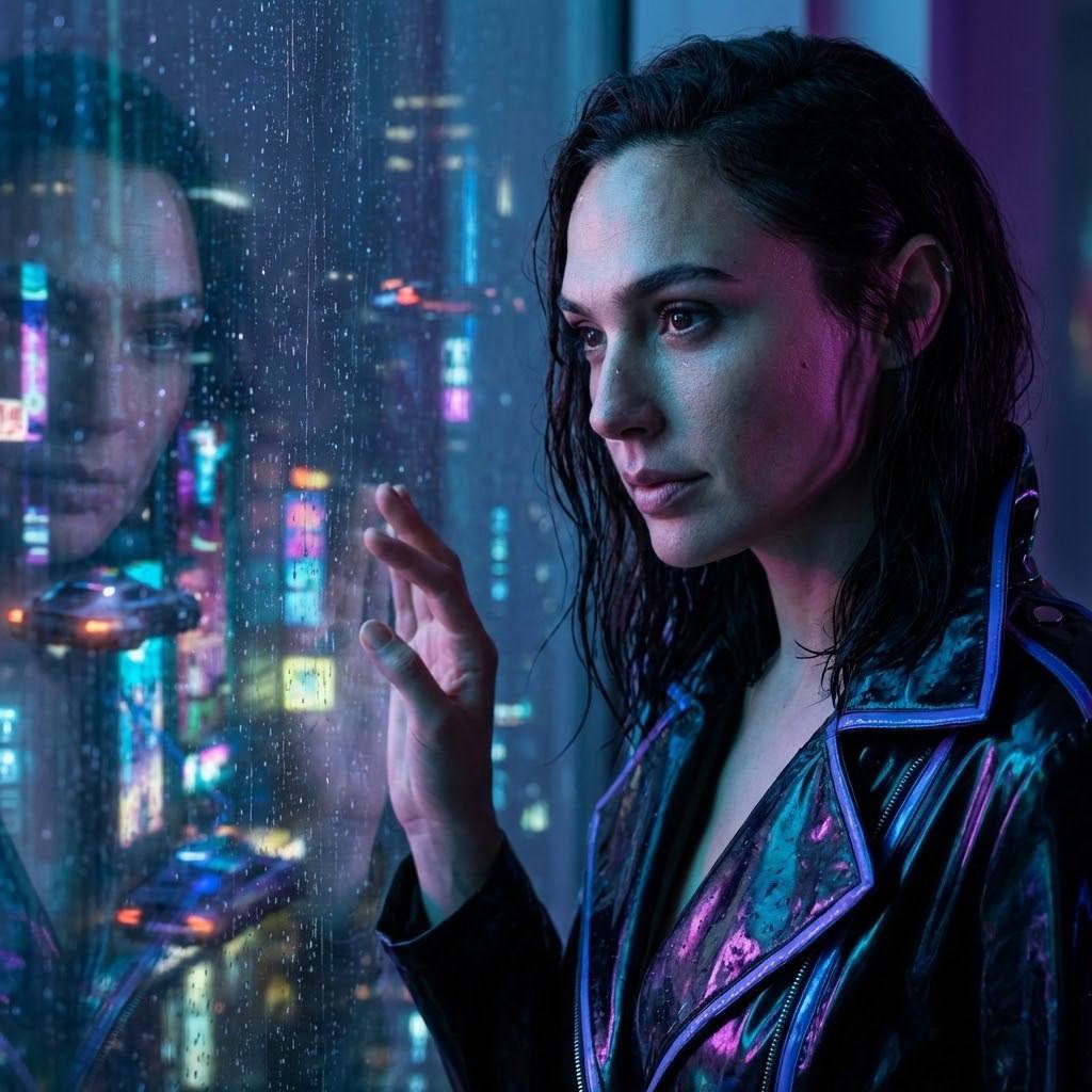 "СТРОГО СОХРАНИ ВНЕШНОСТЬ модели с прикреплённого фото, 1:1 её/его настоящее лицо, глаза, нос, кожа с порами — всё 100% без изменений. Используй отправленное фото как эталон. Максимально сохранить внешность 1-в-1: те же черты лица, пропорции, природную асимметрию, форму и разрез глаз, брови, губы, нос, линию роста волос. Без морфинга, усреднения и face swap. Не менять возраст. Без бьюти-ретуши и «пластиковой» кожи. Не менять форму глаз/носа/губ/скул/челюсти/овала, не уменьшать глаза, не искажать пропорции лица. Загруженное фото — единственный эталон внешности. ПОЗА И КОМПОЗИЦИЯ Средний план (Medium shot) или крупный план (Close-up) модели (девушка/парень). Модель стоит или сидит у окна футуристического небоскреба, на фоне ночного города. Взгляд задумчивый, меланхоличный, направлен вдаль или слегка опущен. Выражение лица спокойное, с легкой ноткой грусти или отстраненности. Возможно, рука слегка касается запотевшего стекла или подбородка. Атмосфера загадочности и одиночества в большом городе. ТЕЛОСЛОЖЕНИЕ Естественное, здоровое телосложение. Кожа влажная от дождя, с легким блеском. Возможно, видны капли воды на волосах или лице. ОДЕЖДА Футуристическая одежда в стиле киберпанк: плащ из латекса или высокотехнологичной ткани, неоновые акценты, возможно, прозрачные элементы. Одежда должна быть стильной и подчеркивать силуэт, но не быть вульгарной. Цвета: темные (черный, серый) с яркими неоновыми вставками (синий, фиолетовый, розовый). МАКИЯЖ / ПРИЧЁСКА Макияж: смелый, графичный, с неоновыми акцентами (например, стрелки или тени). Возможно, легкий блеск на губах. Причёска: стильная, возможно, с элементами футуризма (гладкие пряди, необычные формы) или слегка растрепанная от дождя. ФОН Ночной футуристический мегаполис в дожде. Размытые неоновые вывески, отражающиеся в мокром асфальте и стеклах. Высокие небоскребы, окутанные дымкой. Возможно, видны летящие автомобили или дроны на заднем плане. Атмосфера Blade Runner. СВЕТОТЕНЕВОЙ РИСУНОК (Lighting & Shadows) Контрастный свет от неоновых вывесок. Основной источник света — разноцветные неоновые огни (синий, фиолетовый, розовый, оранжевый), создающие яркие блики и глубокие тени. Контрастные тени (Cinematic split shadows) на лице и теле, подчеркивающие рельеф. Дымка (Volumetric shadows) от дождя и тумана, через которую пробиваются лучи света. Влажные поверхности отражают свет, создавая динамичные блики. Цветовая палитра: холодные синие и фиолетовые тона с теплыми неоновыми акцентами. КАМЕРА 8k. Фотореалистичный стиль. Объектив 50mm или 85mm. Небольшая глубина резкости, выраженное боке на фоне огней города. Фокус на лице модели и каплях дождя. Кинематографичная композиция. НЕГАТИВНЫЙ ПРОМПТ Wide-angle, искажения перспективы, деформация лица и тела. Морфинг, усреднение, face swap, изменение возраста. Уменьшенные глаза, изменение формы глаз/носа/губ/челюсти/овала, потеря естественной асимметрии. Лишние конечности, лишние пальцы, кривые кисти. Агрессивная ретушь, пластиковая кожа, CGI, мультяшность. Пересветы, грязные тени, шум, артефакты генерации. Текст, логотипы, надписи, водяные знаки, лишние объекты. Яркий дневной свет, солнечная погода, сельская местность, старые здания, отсутствие дождя, плоский свет, отсутствие теней, вульгарность, пошлость, дешевизна."