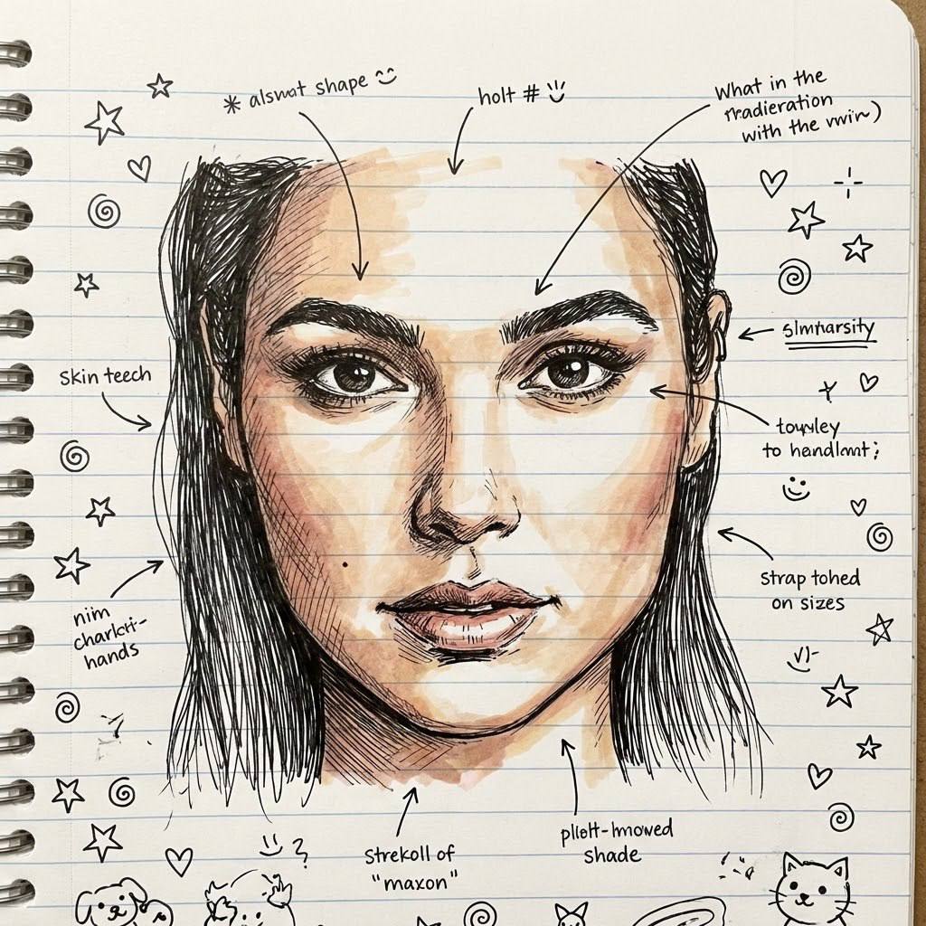 Turn my portrait into a pen-and-marker notebook doodle on ruled paper, with playful arrows and tiny margin sketches. Keep my face recognizable.